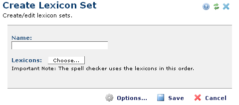 Enter a unique name in the Name field. This is the name that will appear in the Manage Lexicon Sets list.