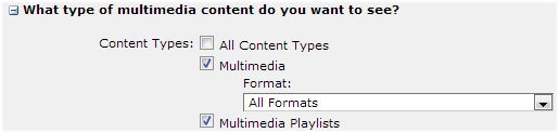 This dialog displays when you select the Advanced Search option within choose multimedia operations to add criteria to multimedia or playlist searches.
