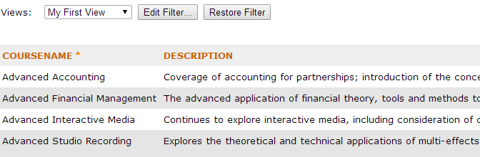 CommonSpot makes this dialog available for selecting which columns in the view are displayed when the datasheet is viewed by site visitors in Read mode.